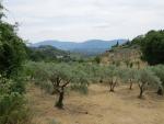 auf einer Anhöhe blicken wir zurück, und erspähen im Wald Greccio