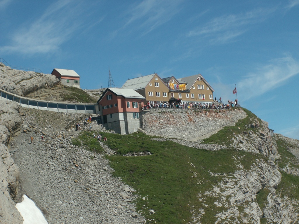 Blick zurück zum alten (schönerem) Berggasthaus Säntis Datum 08.08.2006