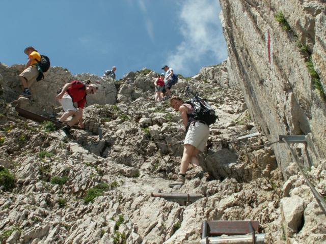 besorgte Gesichter, zuviele Menschen auf dem Lisengrat Datum 08.08.2006