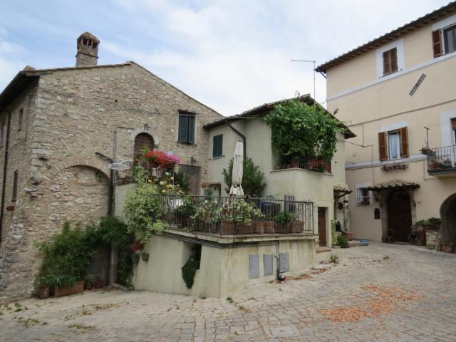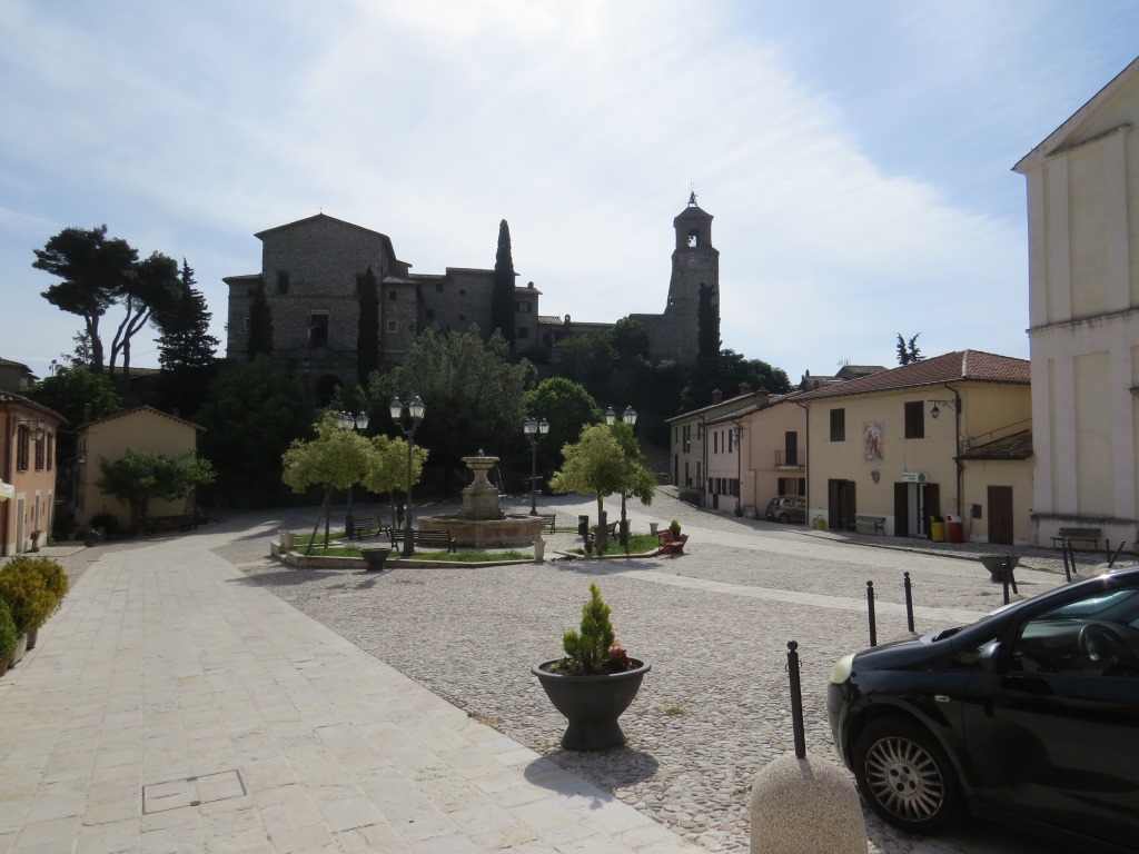 beim schönen Dorfplatz von Greccio starten wir die heutige Etappe