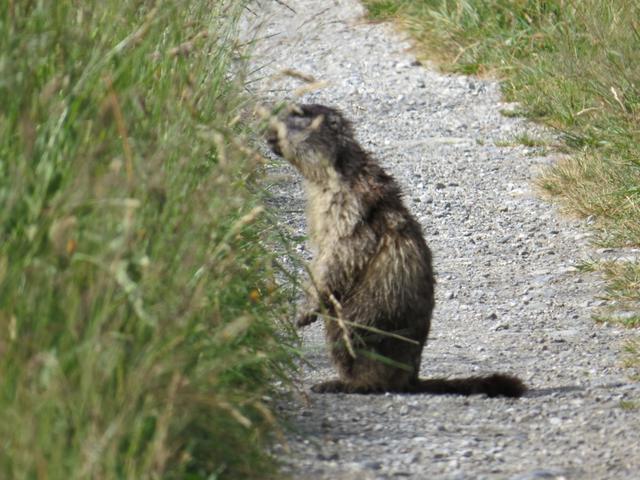 ein Murmeltier hat uns noch nicht erspäht und sitzt direkt auf dem Wanderweg