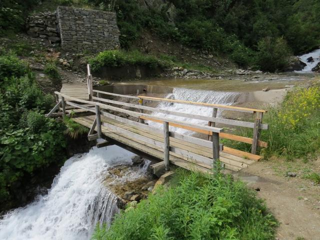 über eine Holzbrücke wird der Gebirgsbach Torrent des Erbets 1817 m.ü.M. überquert