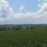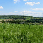 Breitbildfoto kurz vor Lauzerte. Wiesen, Felder und Wälder, soweit das Auge reicht