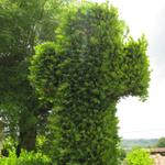 ein Kreuz, das vollkommen mit Efeu überdeckt ist.