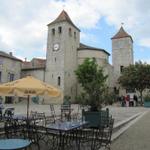 Blick zum bekannten Turm der Kirche von Montcuq