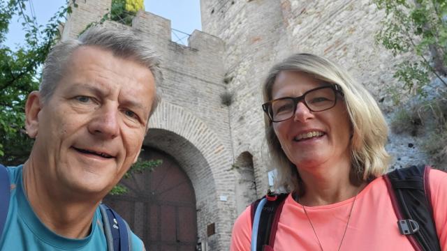 beim Tor des Kastell, das in seiner Form an die Silhouette eines Adlers erinnert, knipsen wir ein Erinnerungsfoto