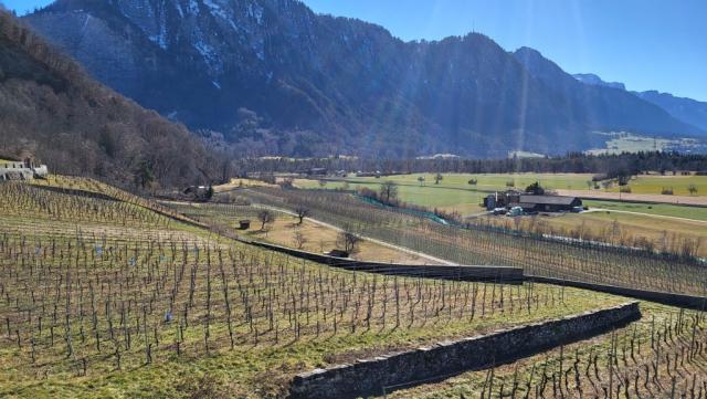 ...und wandern über Rebhänge leicht abwärts. Zeitgleich verlassen wir die Bündner Herrschaft