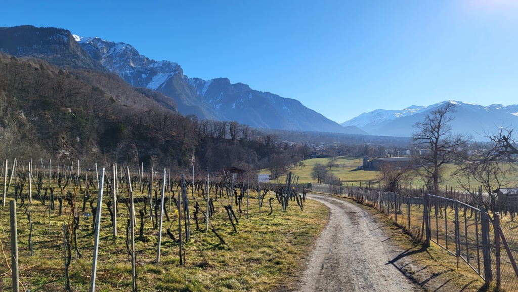 wir haben Maienfeld hinter uns gelassen. Über Rebhänge wandern wir Richtung Jenins