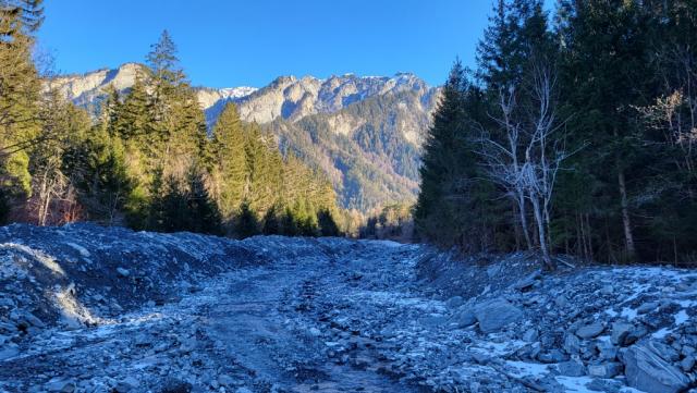 wir erreichen die Maschänser Rüfi, ein sehr wilder Bergbach
