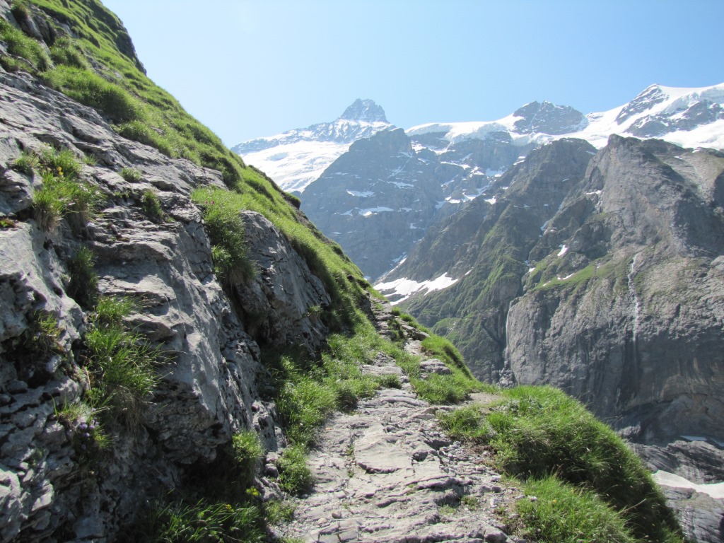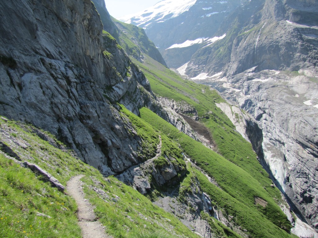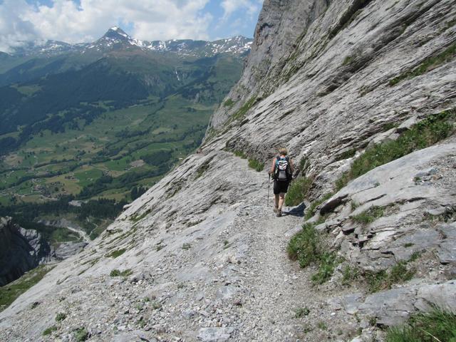 der "Ischpfad" durchquert die senkrechten Abstürzen des Wetterhorn Datum 14.04.2014