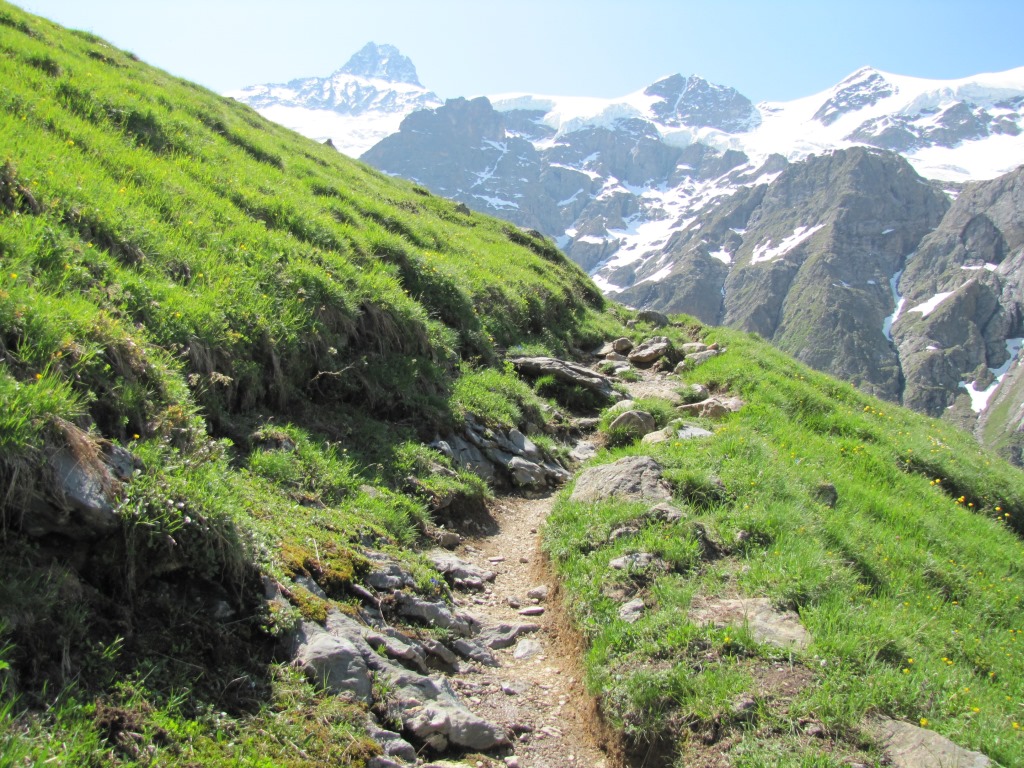 wir verlassen die Glecksteinhütte. Auf dem gleichen Weg wie wir gekommen sind, geht es nun abwärts Datum 15.04.2014
