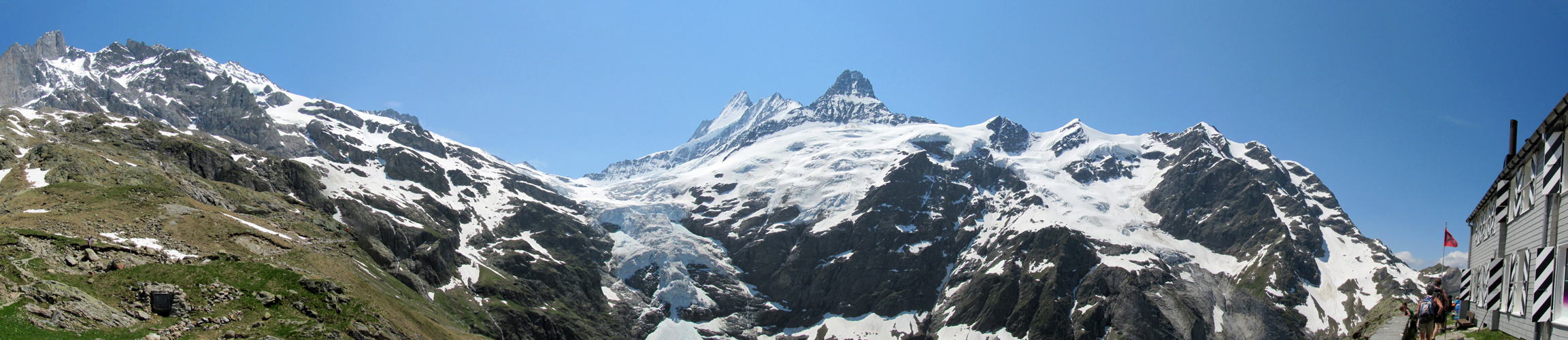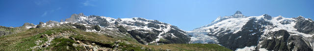 sehr schönes Breitbildfoto. Links Beesi Bergli, Oberer Grindelwaldgletscher, Schreckhorn, Nässihorn und Klein Schreckhorn Datum 16.02.2017