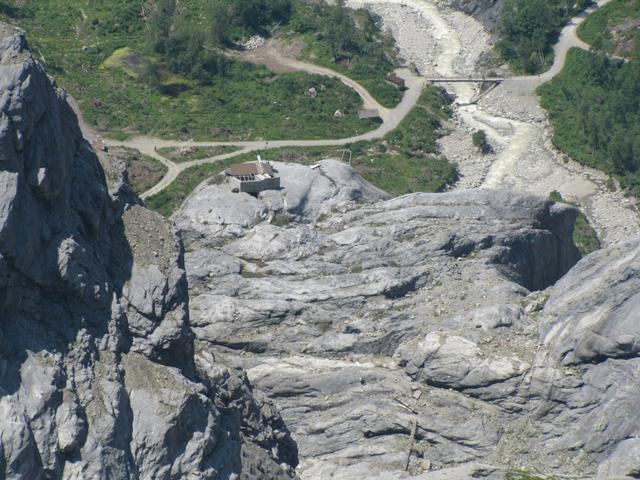 wir haben Punkt 1735 m.ü.M. bei Engi erreicht. Blick auf die Bergstation der alten Seilbahn Datum 14.04.2014