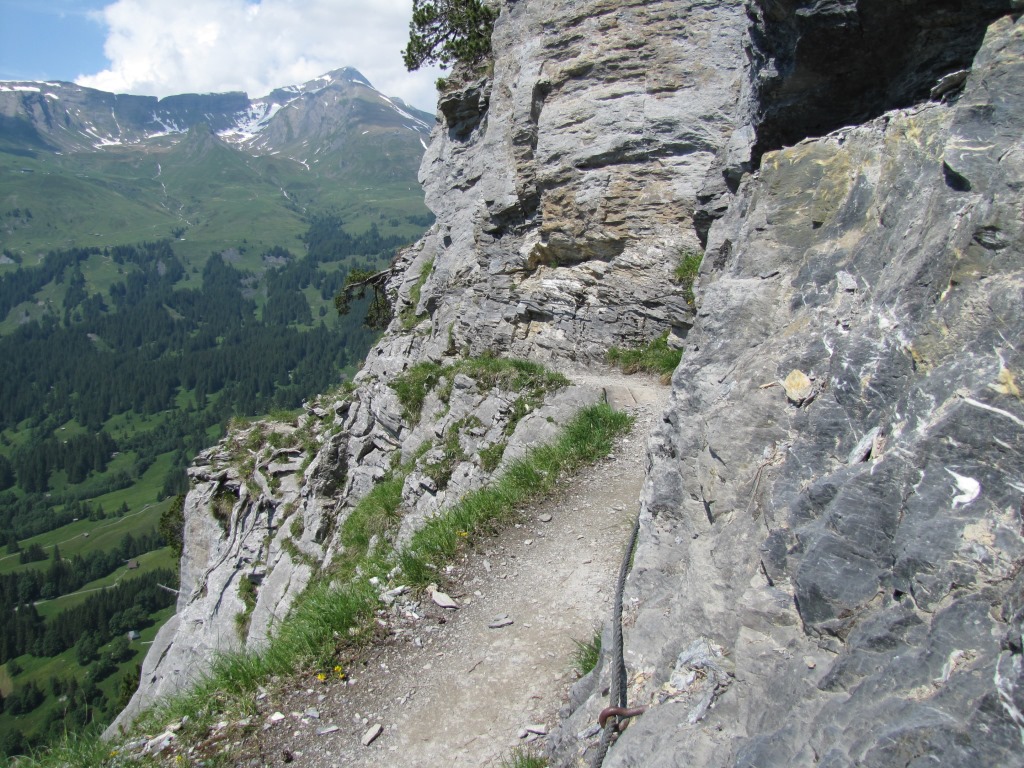 Blick hinauf zum Ischpfad. Dieser ausgesetzte Pfad werden wir unter die Füsse nehmen Datum 14.04.2014