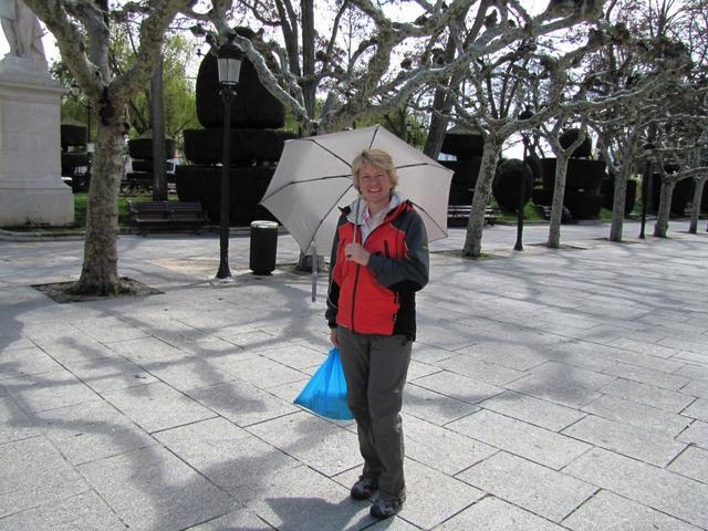 Mäusi beim Paseo del Espolón. Heute brauchen wir den Schirm nicht mehr. Traumhaftes Wetter aber kalt