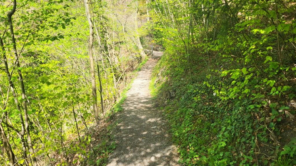 der Weg schlängelt sich durchs idyllische Tobel... Datum 22.04.2024