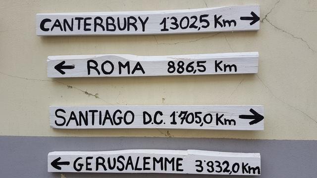 sicher leiten uns die Tafeln der Via Francigena durch den Strassendschungel von Ivrea