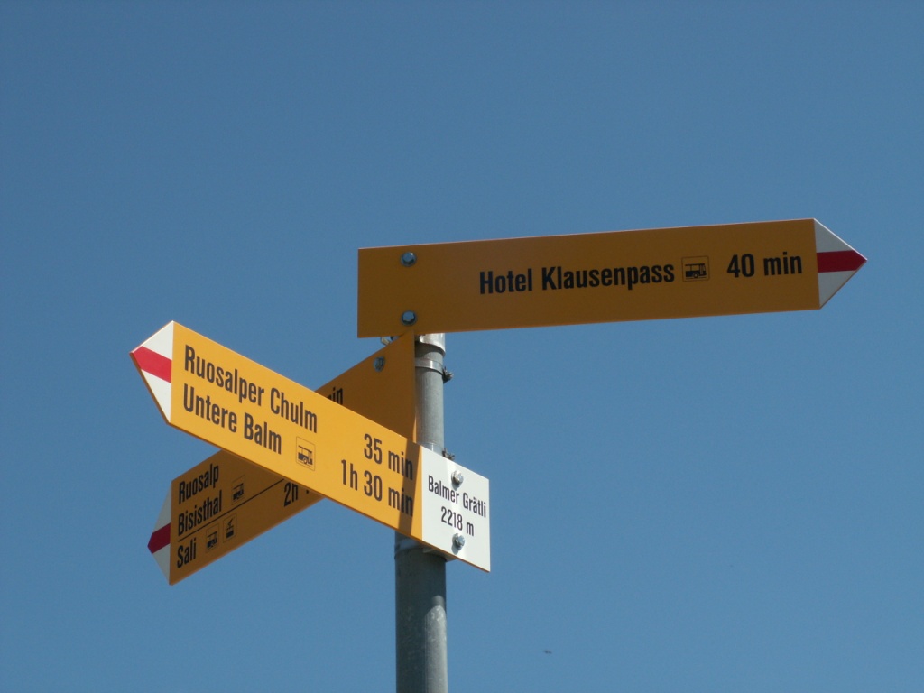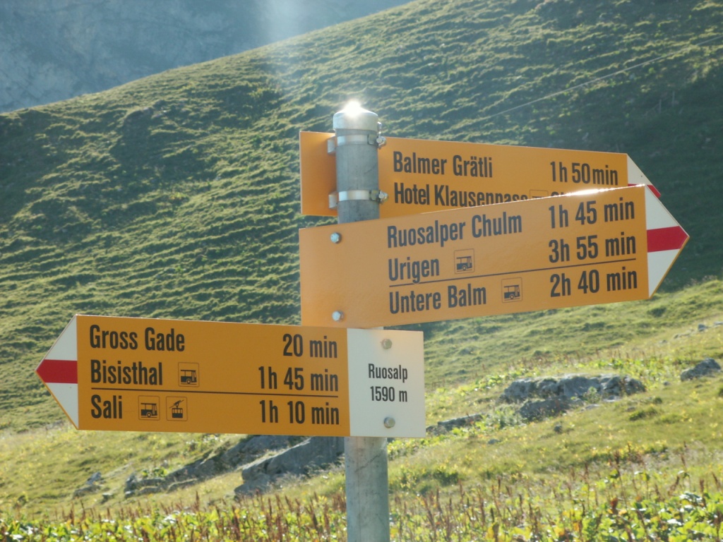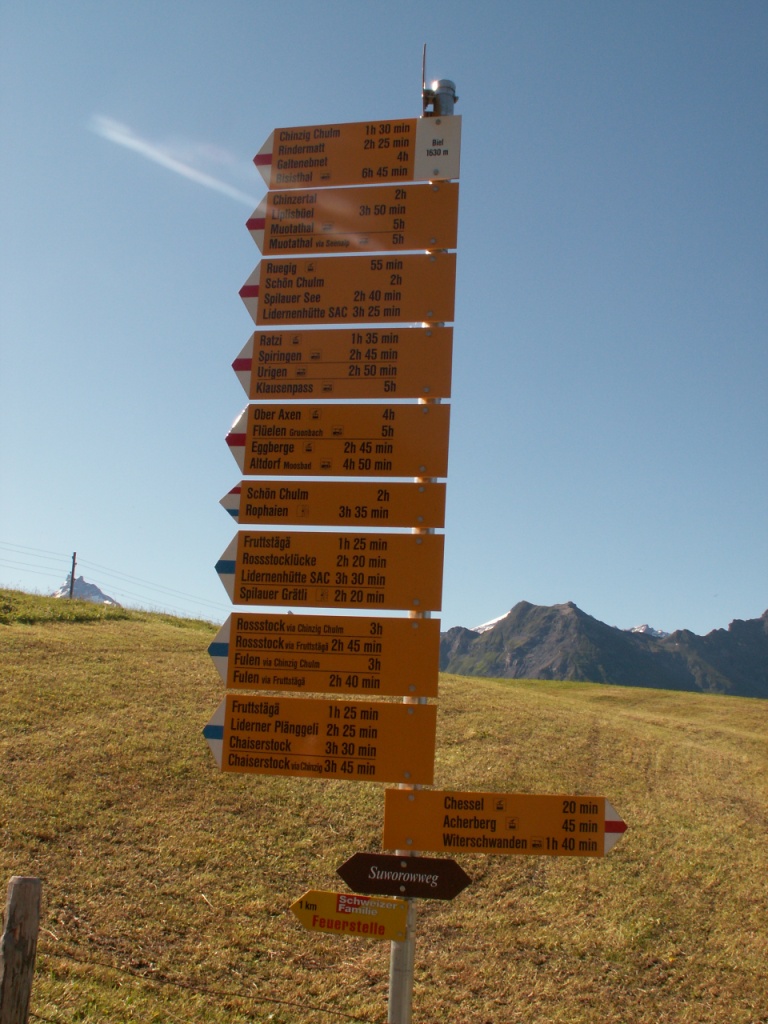 Wegweiser bei Biel 1637 m.ü.M.