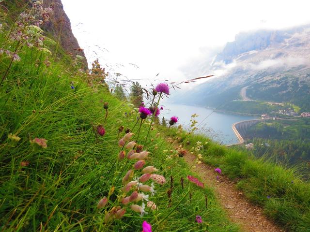 über einen schönen Bergpfad geht es gemütlich abwärts Richtung Fedaiasee Datum 20.09.2014