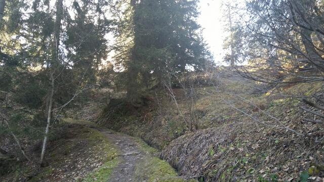 bei Gäsistei steigt der Weg wieder an und wir tauchen in den Wald hinein
