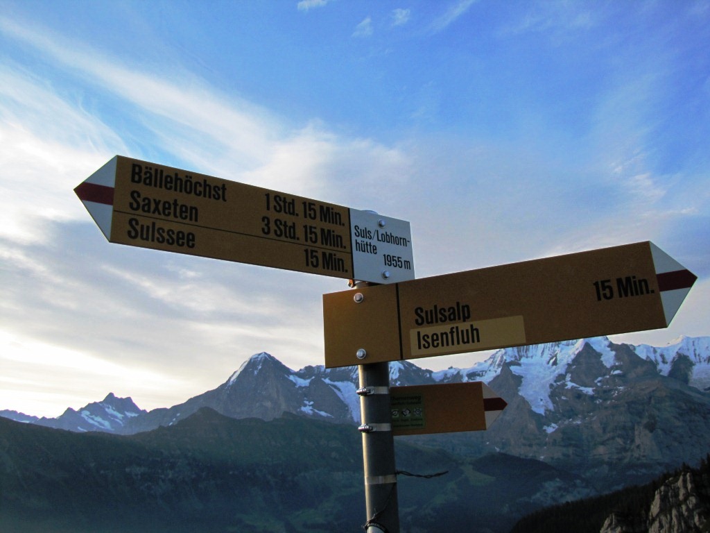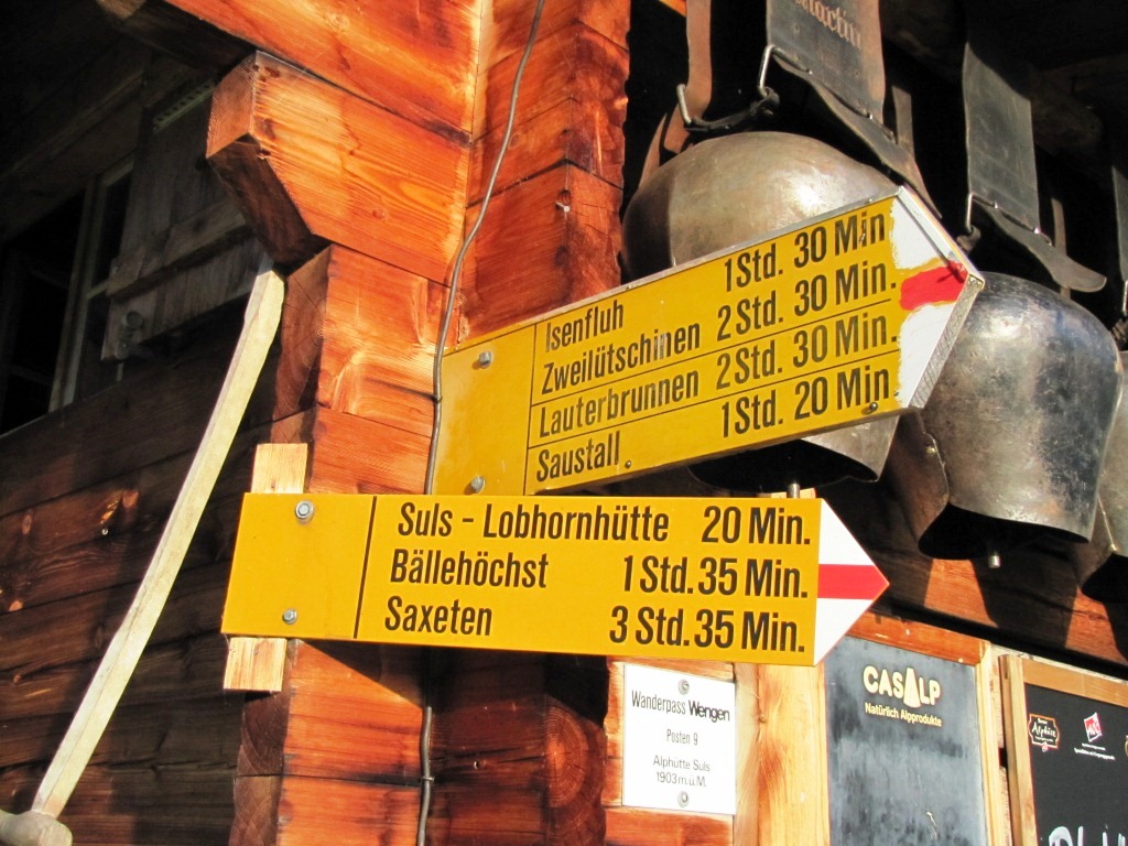 Wegweiser bei der Lobhornhütte 1955 m.ü.M. ein langer Wandertag steht uns bevor Datum 10.04.2013