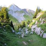 Blick hinauf zur Sousegg. Dort hinauf führt unsere Wanderung Datum 10.04.2013