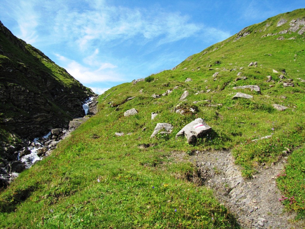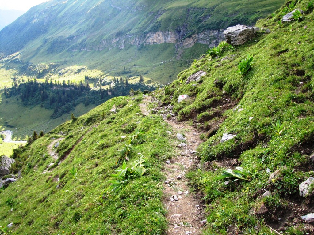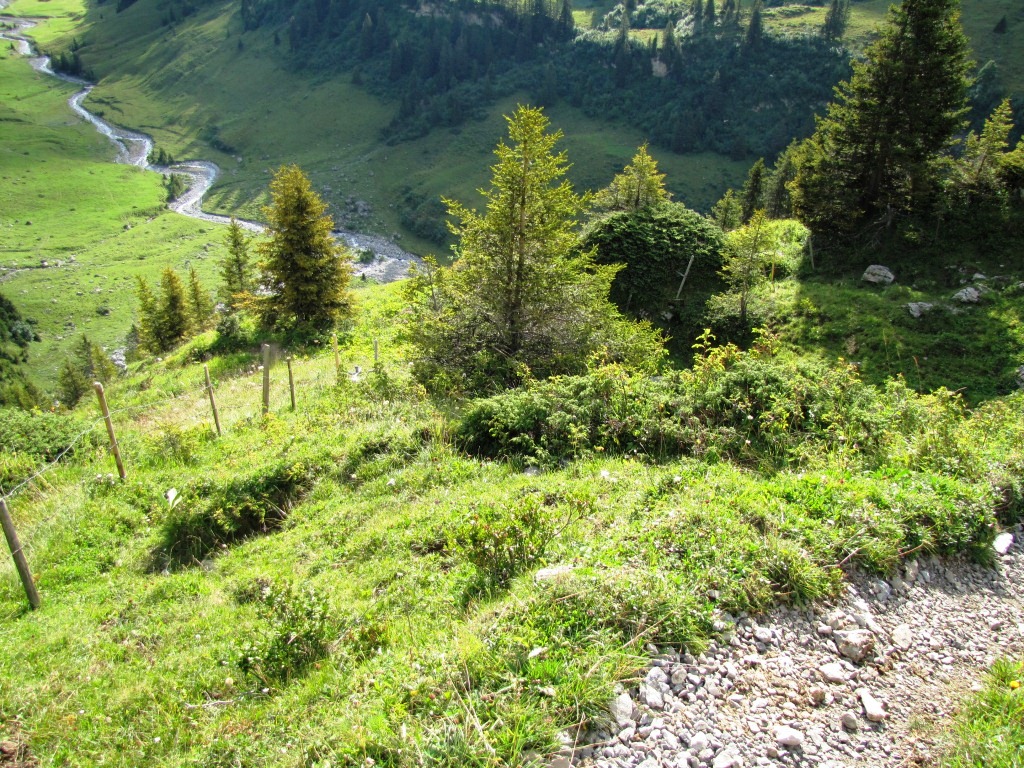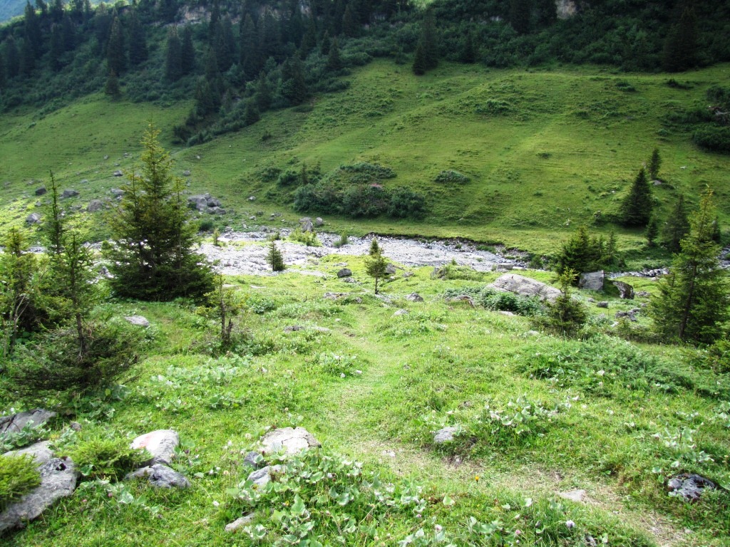 kurz nach dem Chantbach beginnt der Abstieg in das Soustal Datum 10.04.2013