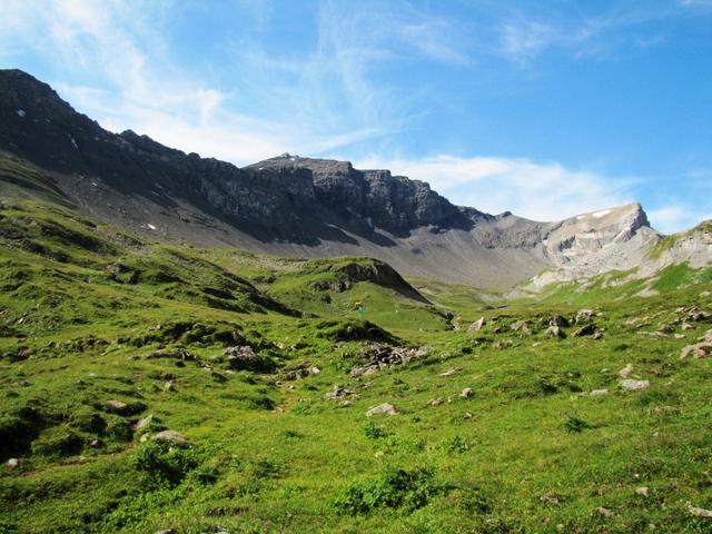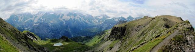 nach der Sousegg liefen wir hinunter zum Sousboden. Links der Bietenhorn, rechts davon das Schilthorn Datum 10.04.2013