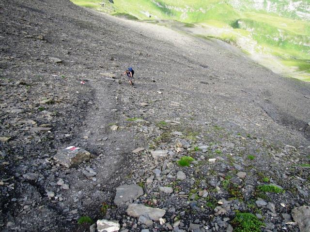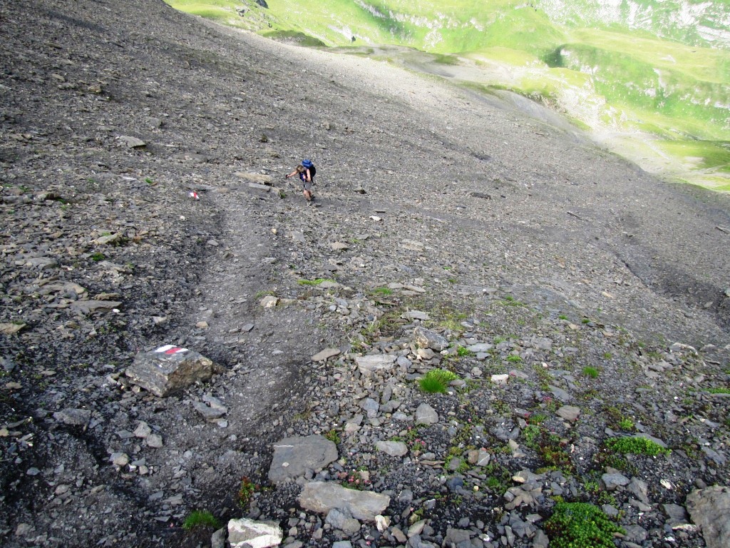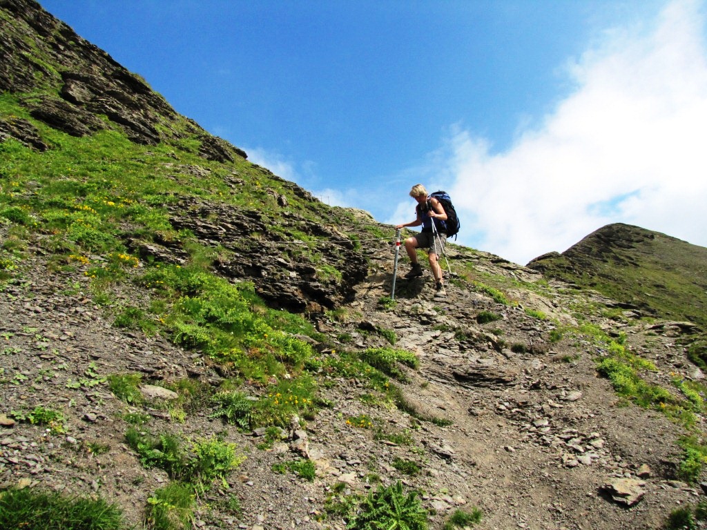 der Weg auf der anderen Seite der Bietenlücke ist genauso steil. Sicherungen sind vorhanden Datum 10.04.2013