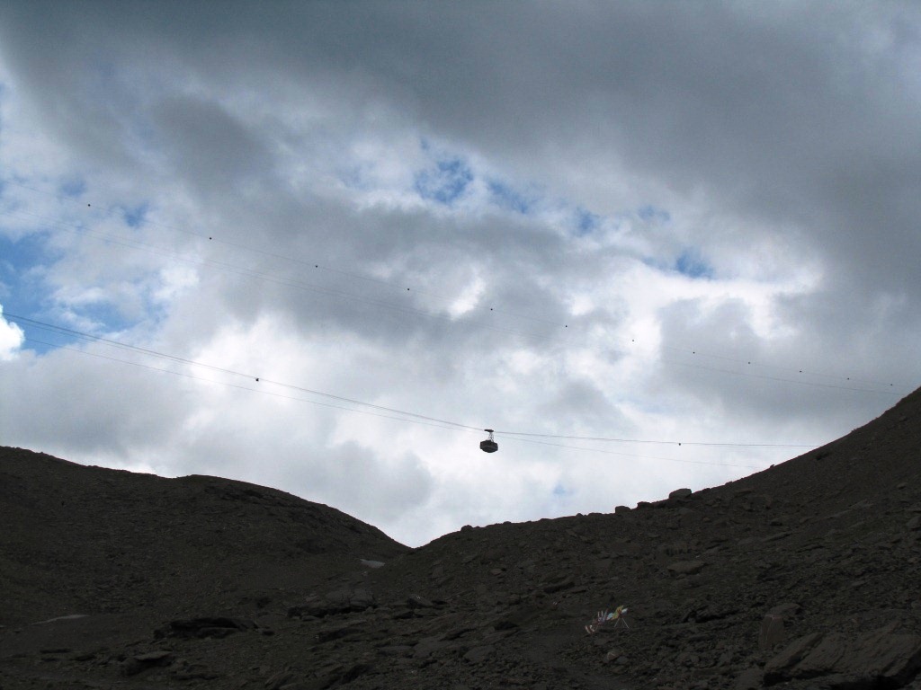 die Luftseilbahn auf der Fahrt zwischen Birg und Schilthorn Datum 10.04.2013