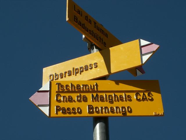 Wegweiser bei der Maighels Hütte Datum 16.10.2007