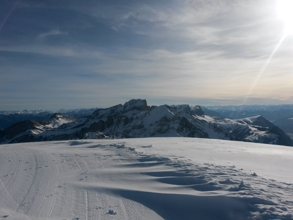 mit der Seilbahn fahren wir hinauf auf den Chäserrugg 2262 m.ü.M.