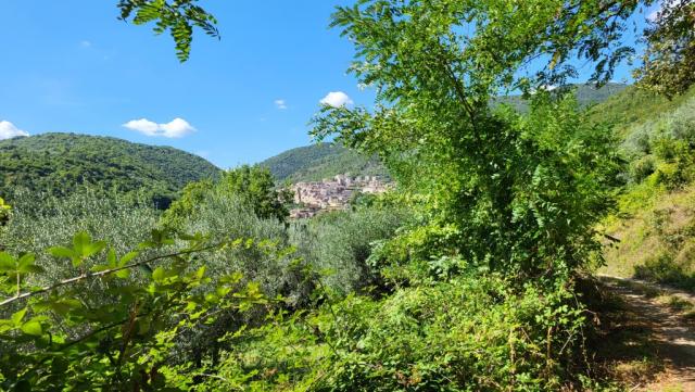 vor uns erhebt sich Guarcino, ein zwischen Bergen und grünen Wäldern erbautes Dorf Datum 09.01.2026
