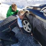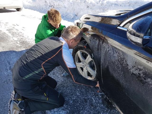kurz nach Habkern müssen wir die Schneeketten montieren Datum 10.04.2018