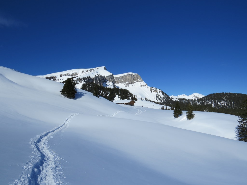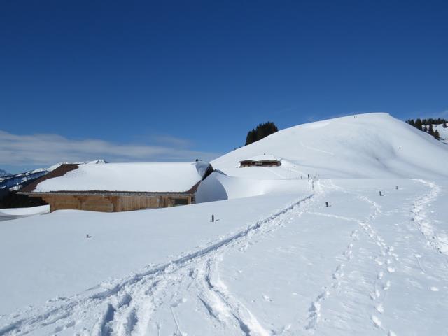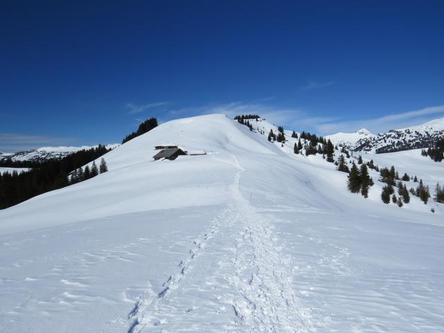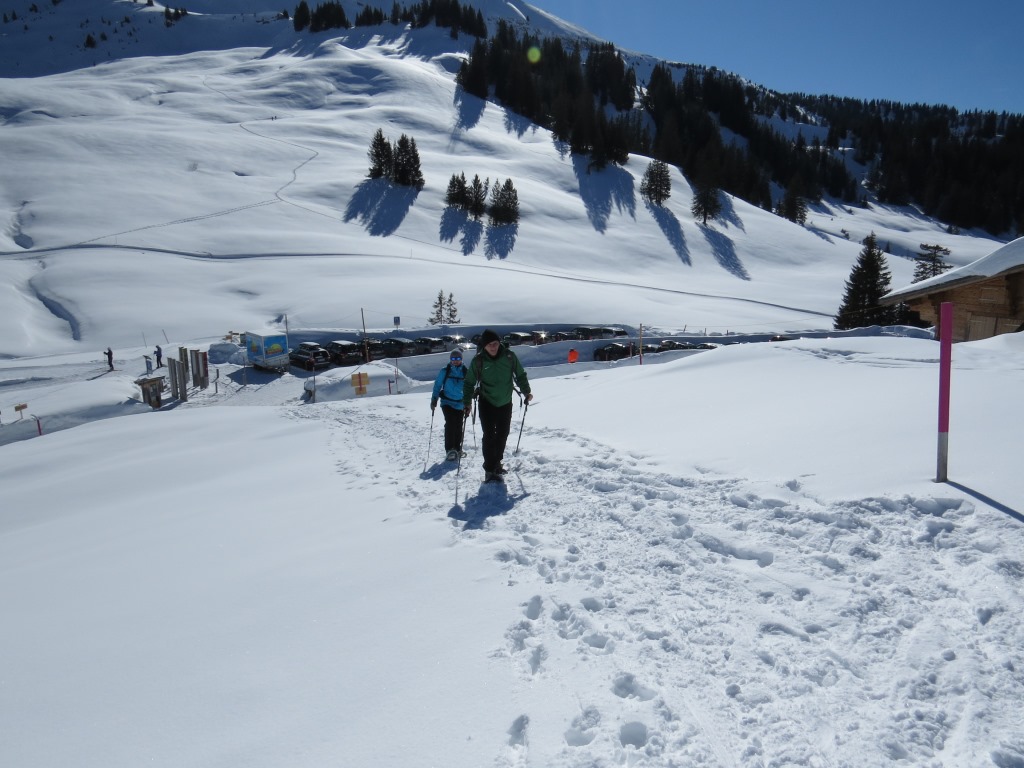 rasch haben wir die Alphäuser bei der Weggabelung 1704 m.ü.M. erreicht Datum 12.04.2018