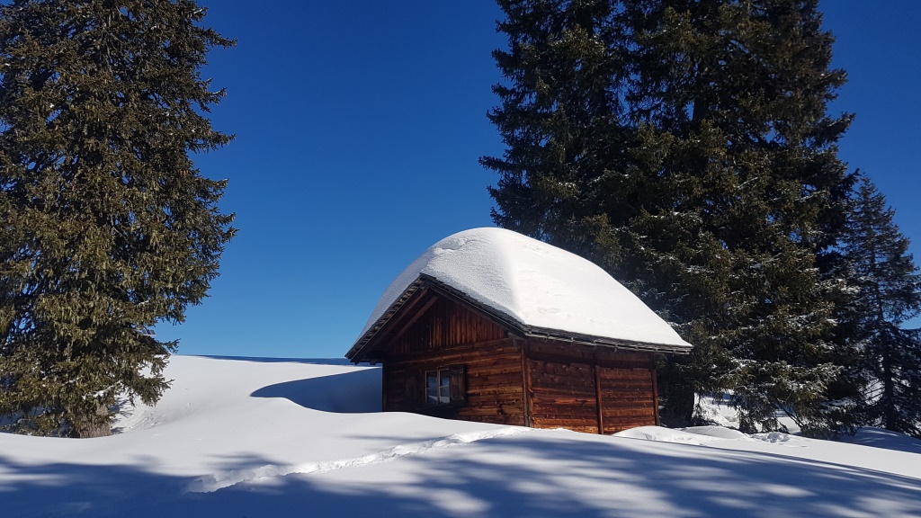 wir haben die Alphäuser auf Läger 1722 m.ü.M. erreicht Datum 12.04.2018