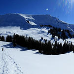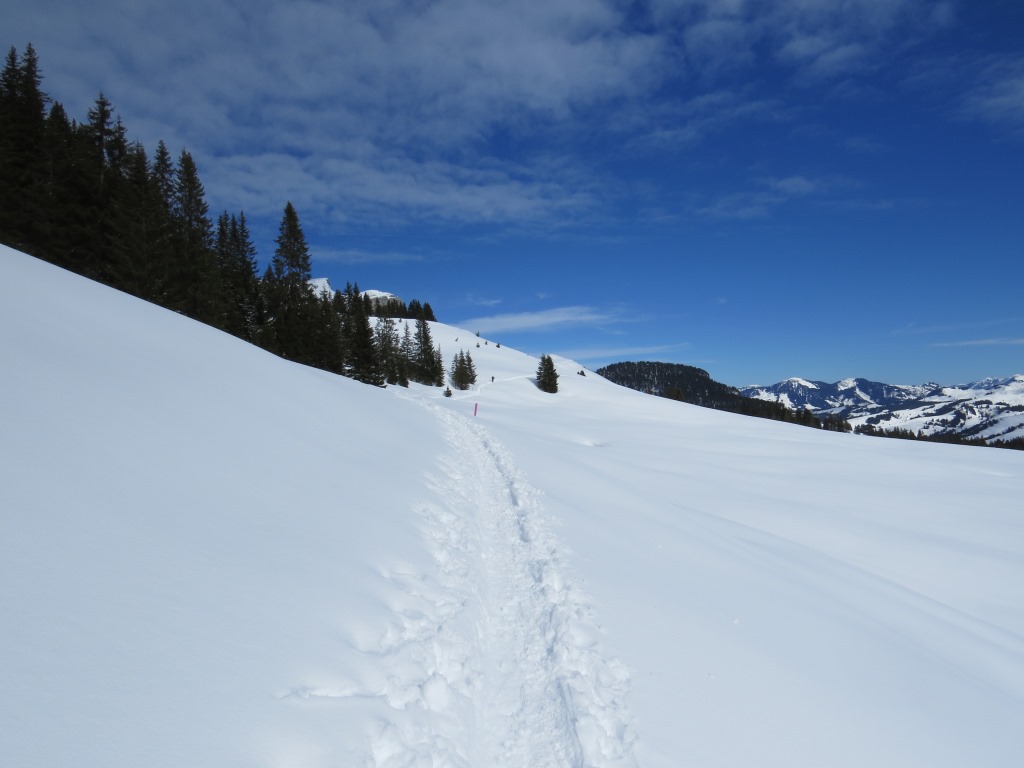 den markierten Schneeschuhtrail nicht verlassend, geht es weiter Richtung Lägerstutz Datum 19.04.2018