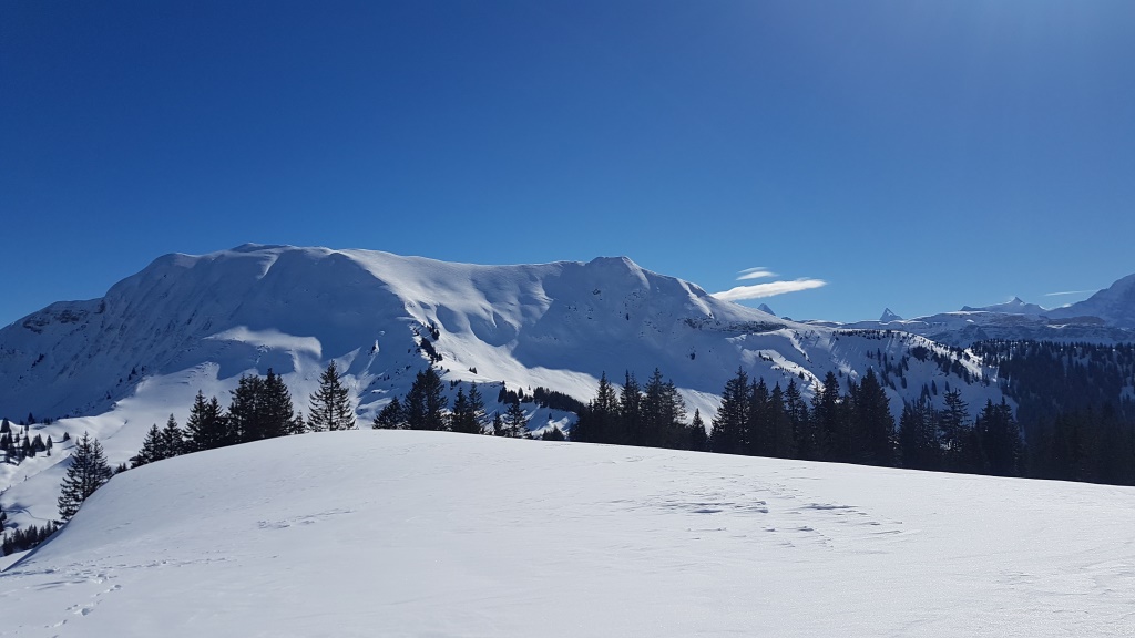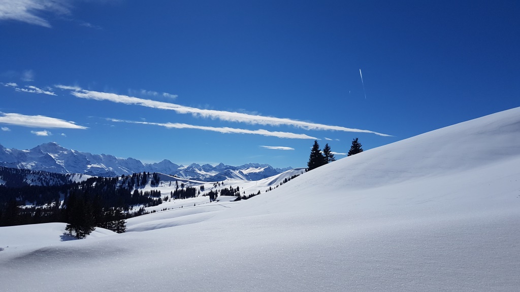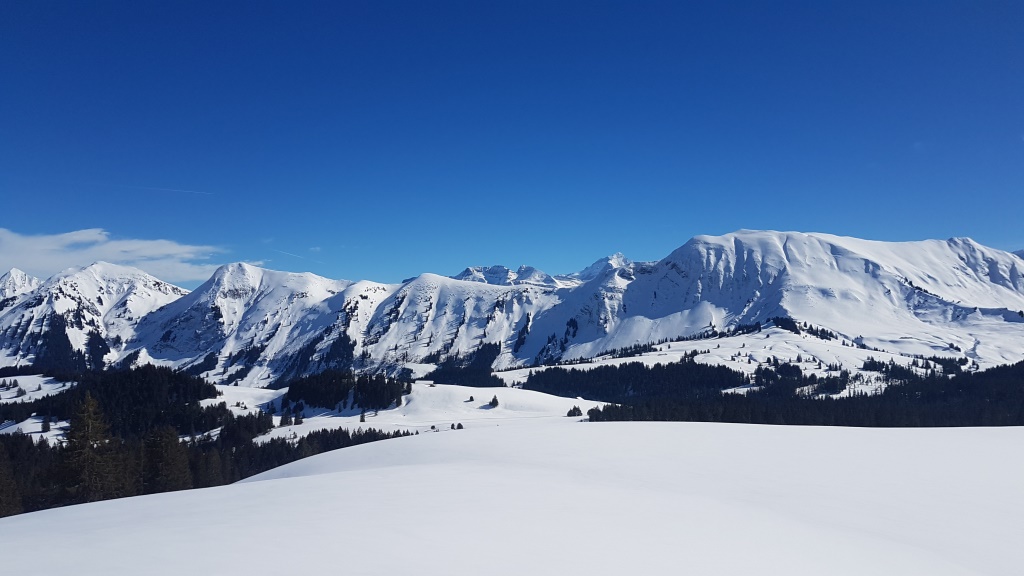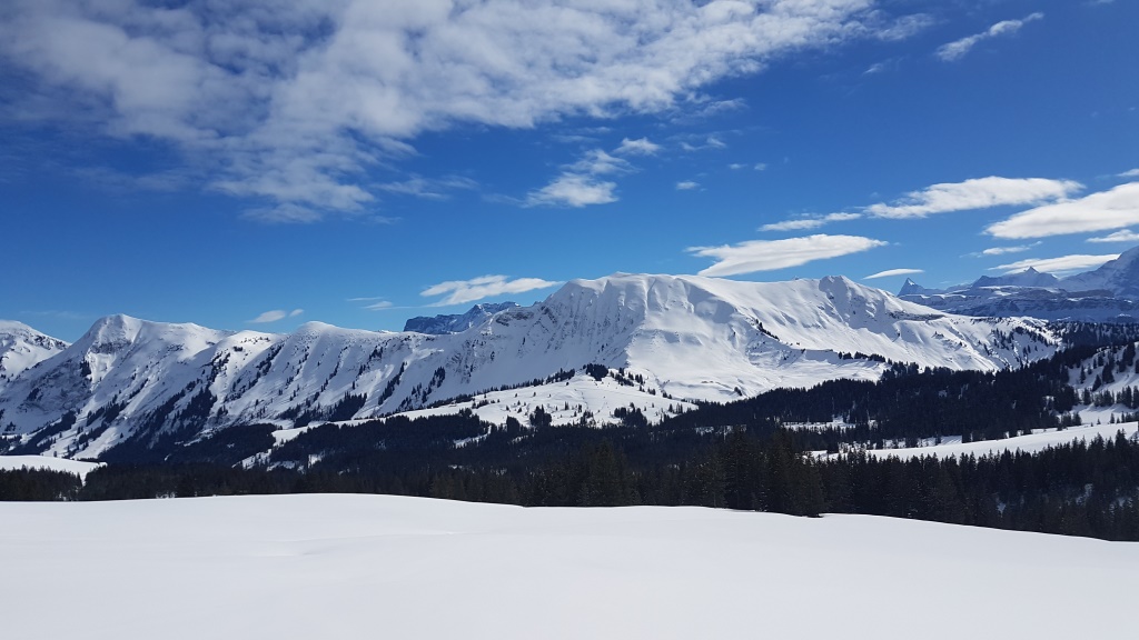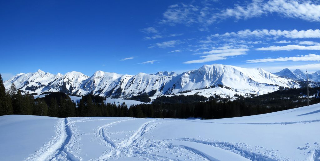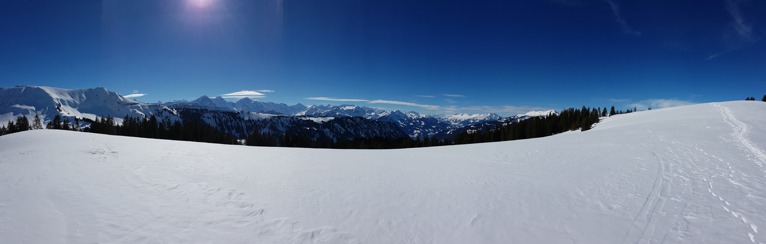 sehr schönes Breitbildfoto mit Blick zur Hohgant und auf die Lombachalp Datum 12.04.2018