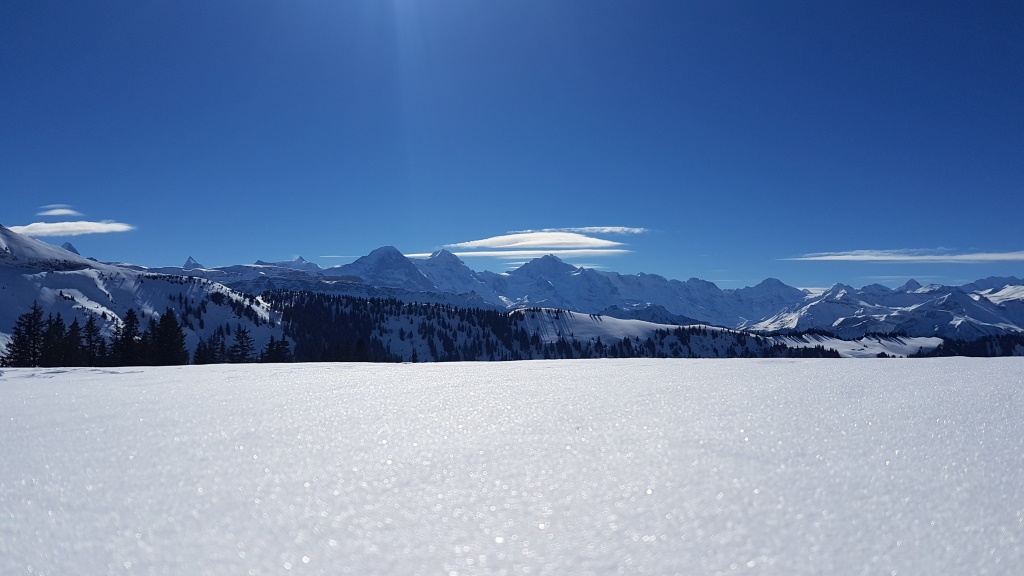 was für ein Ausblick auf Augstmatthorn, Riedergrat, Tannhorn und zuhinterst Brienzer Rothorn Datum 12.04.2018