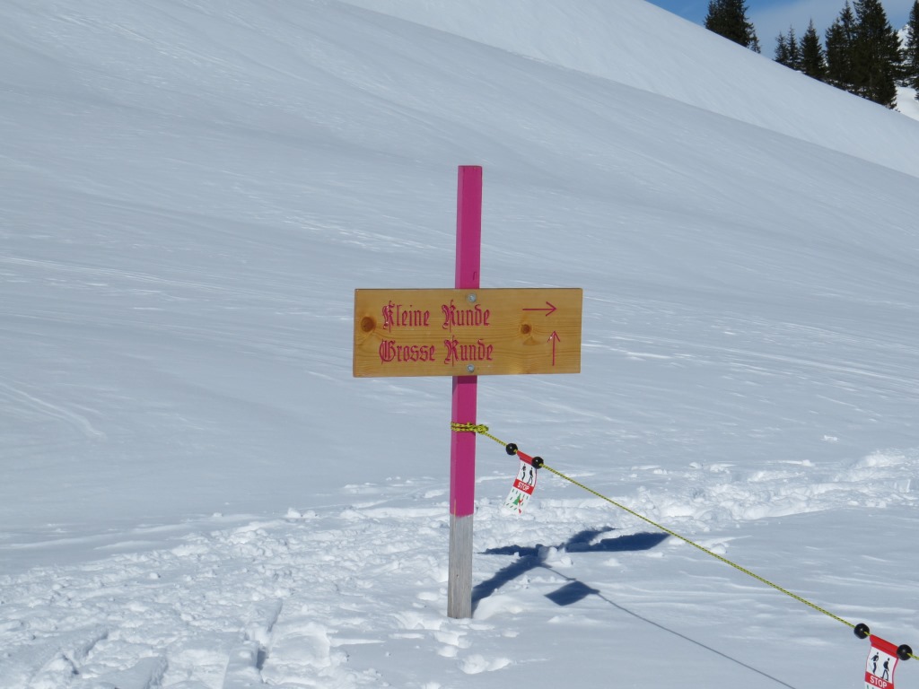 in der Wildschutzzone Lombachalp ist es strengstens verboten den markierten Schneeschuh Trail zu verlassen Datum 10.04.2018