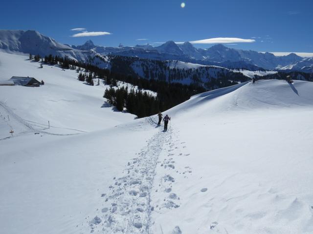 immer dem Kamm entlang, der der Felsenburg des Hohgant entgegenstrebt... Datum 10.04.2018