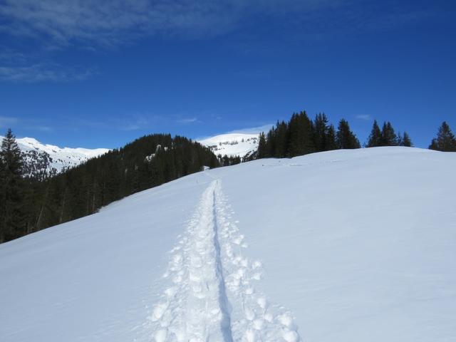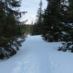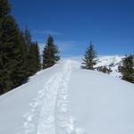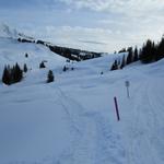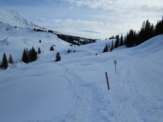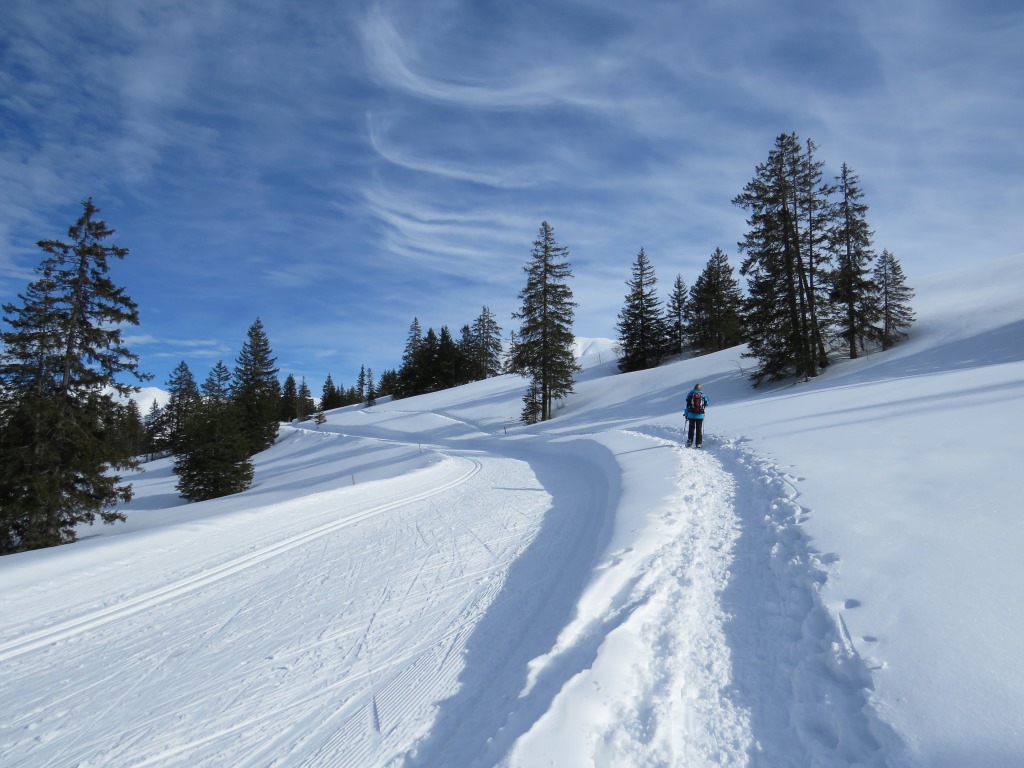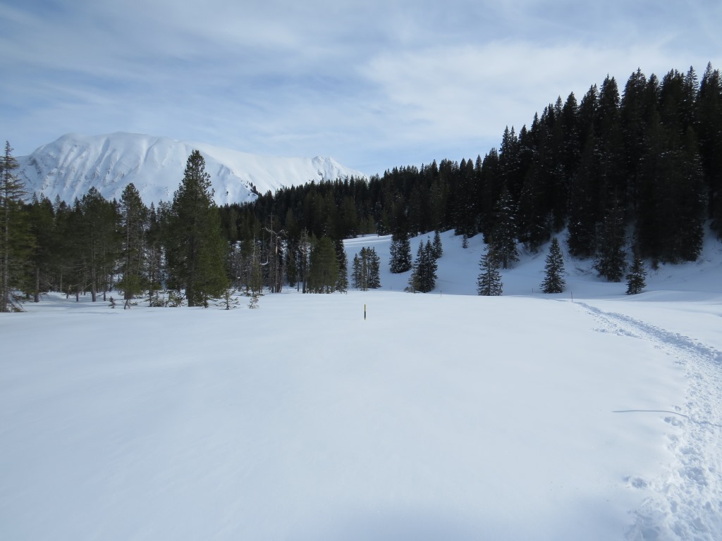 teilweise abkürzend geht es über Feldmoos 1562 m.ü.M. Datum 19.04.2018