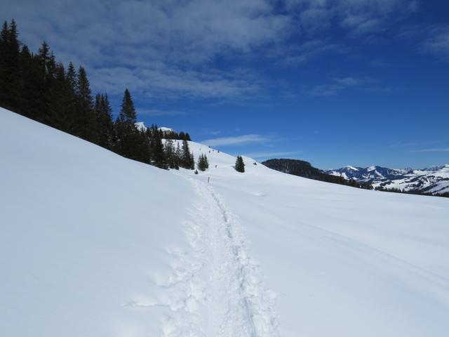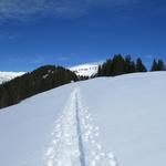 links an Punkt 1597 m.ü.M. vorbei, geht es aufwärts Richtung Winterröscht Datum 10.04.2018