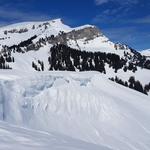 Blick über die Schneewächte bei Stand, blicken wir zum Augstmatthorn und zum Dreigestirn Datum 19.04.2018