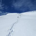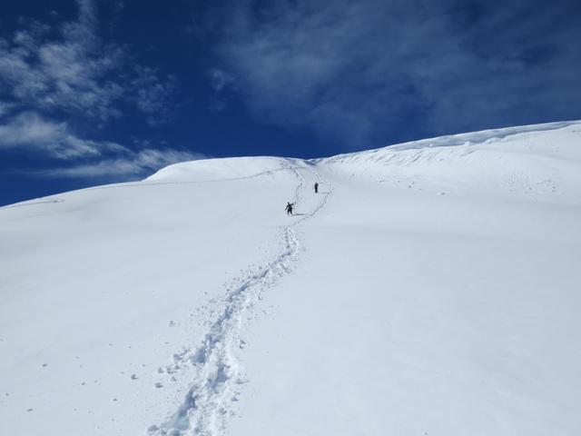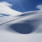 ...und wandern über Tiefschnee einen steilen Hang abwärts... Datum 19.04.2018