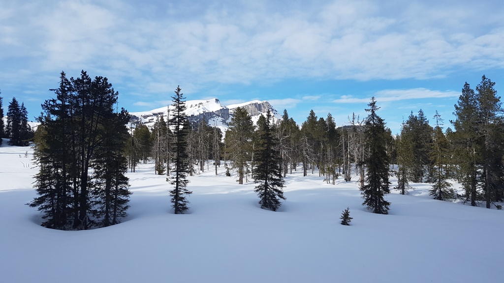 über traumhaftes Schneeschuhgebiet erreichen wir den Stand 1765 m.ü.M. Datum 12.04.2018