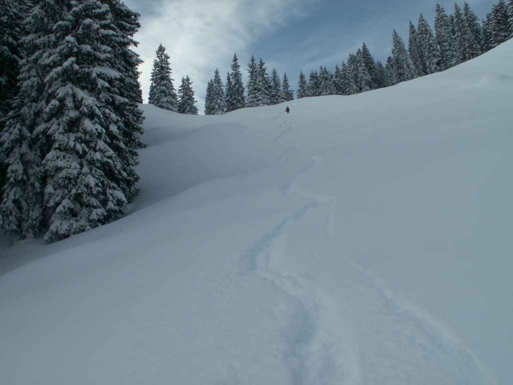 Franco hat die Spuren im Hang schon gelegt. Nun kommt Mäusi nach