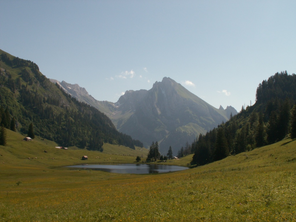Gräppelensee mit Wildhuser Schafberg und Rotsteinpass Datum 27.06.2007