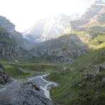 Blick von der Gspaltenhornhütte runter zum Moränenweg, den wir nacher unter die Füsse nehmen