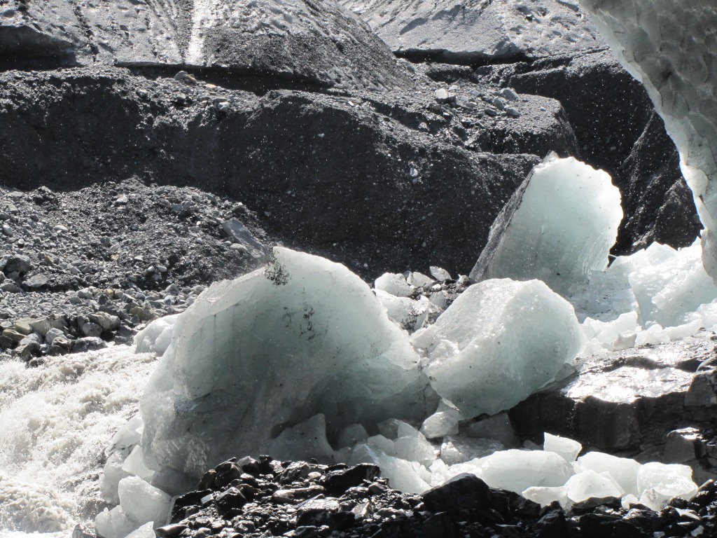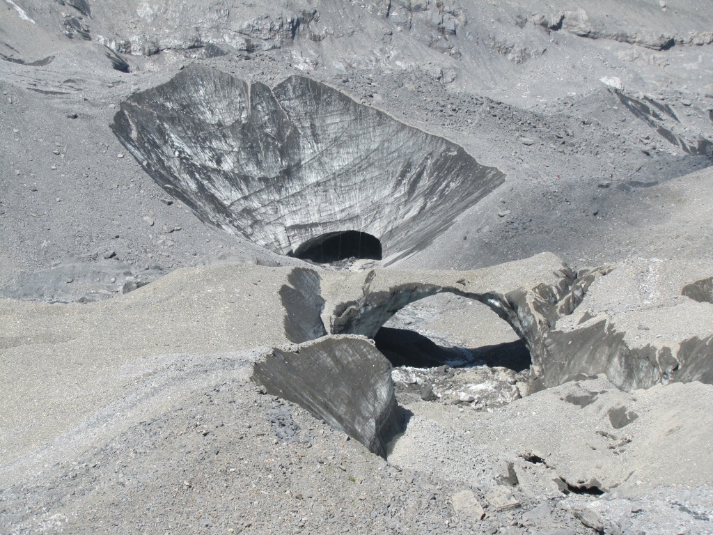 auf diesem Foto gut ersichtlich. Der Gletscher ist mit einer dicken Schuttschicht bedeckt